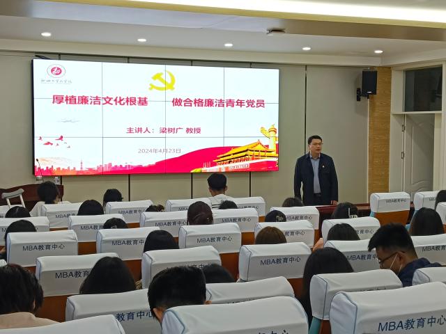 4月23日,万象城awc官网登录入口于东校区1#707举办入党积极分子专题党课培训会。学院党委纪检委员、副院长梁树广以《厚植廉洁文化根基 做合格廉洁青年党员》为题,对全体入党积极分子进行了培训。