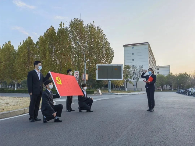 伴着晨风,迎着朝阳。国旗护卫队迈着铿锵有力的步伐,护送国旗入场。“升国旗,奏唱国歌,请全体师生行注目礼。”随着主持人音落,《义勇军进行曲》响彻全场,五星红旗冉冉升起,全体师生肃立,面向国旗行注目礼。接着,由学生代表进行“青春心向党 百年正启航”主题演讲,强调新时代青年应当厚植家国情怀,做坚定勇毅的“信仰者”;新时代青年,应当锤炼品德修为,做矢志前行的“追梦人”;新时代青年,应当勤学立志务实,做砥砺奋进的“实干家”。演讲感染着在场的每一位青年。