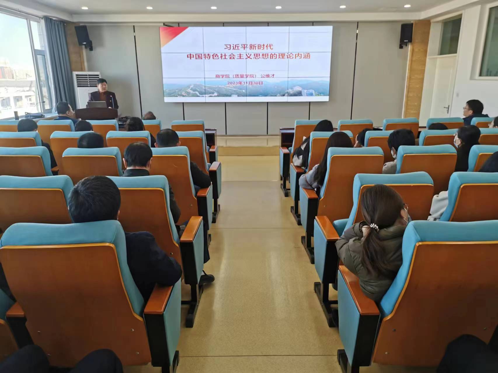 11月30日,万象城awc官网登录入口在东校区1#707开展了“党委书记讲党课”暨教职工政治理论学习活动,党委书记公维才讲授了《习近平新时代中国特色社会主义思想的理论内涵》专题党课,学院全体教职工参加。党课主要围绕习近平新时代中国特色社会主义思想是如何创立的,其主要内容有哪些,其历史地位如何等三方面展开。