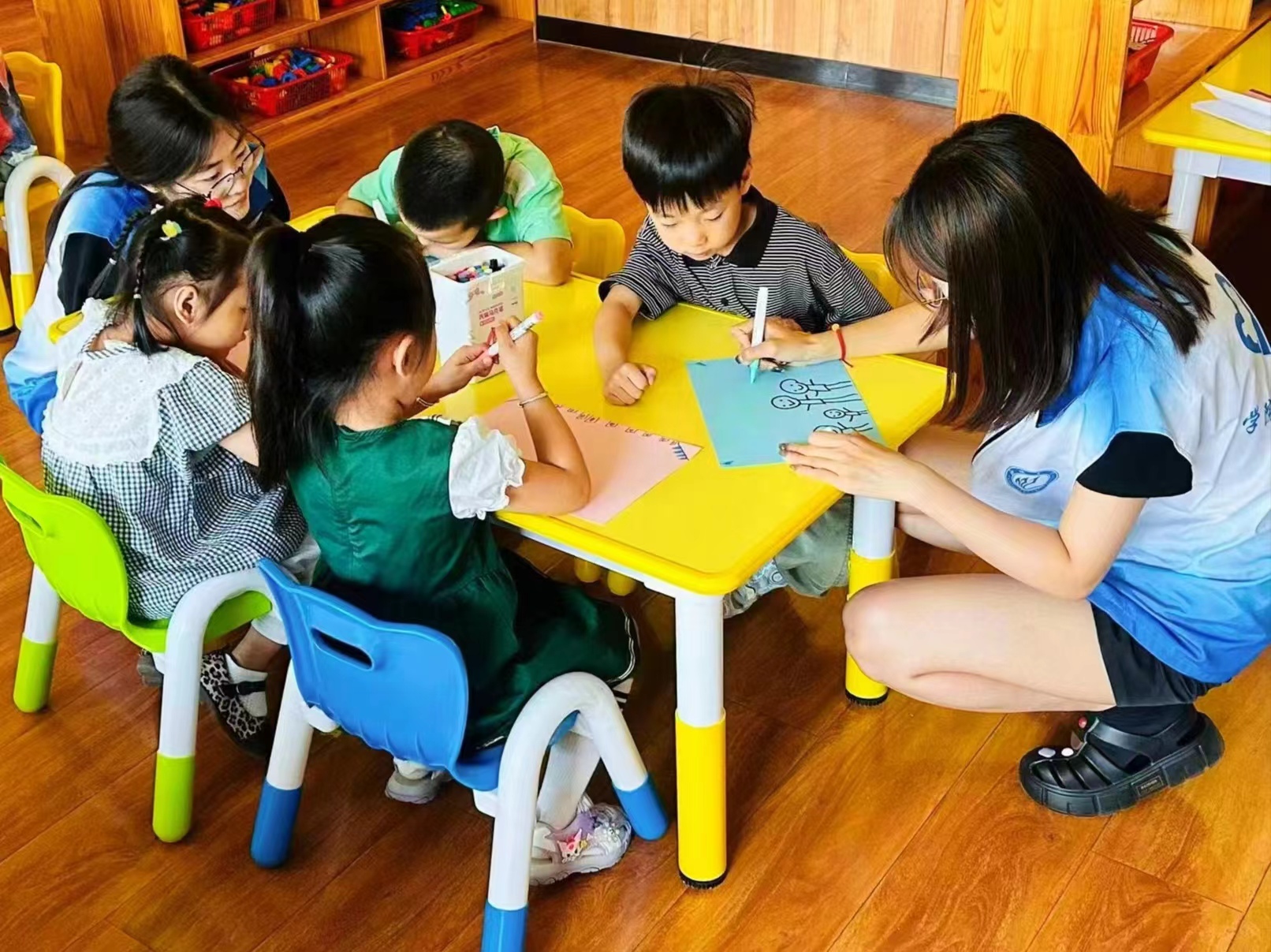 主讲人邀请小朋友们一同观看了有关节日的动画短片,使小朋友们对感恩父母有了更深刻的认识。在有奖竞答环节,主讲人向小朋友们提出一系列问题,小朋友们积极思考,纷纷举手抢答,现场气氛活跃。随后,志愿者们教小朋友们学唱儿歌《爸爸妈妈我爱您》,小朋友的歌声中充满了对父母的感激和爱意,旋律优美,歌词感人。亲手绘心意,感恩父母情。小朋友们发挥自己的想象力和创造力,制作出精美贺卡,并写下对父母的祝福和感谢,表达了自己对父母的深深爱意。此外,志愿者们还与小朋友们一起制作了手工花束和纸杯帽子等美观实用的创意手工,鼓励小朋友们将其送给自己的爸爸妈妈,这一环节不仅锻炼了小朋友们的动手能力和创新意识,也加深了父母与子女之间的亲情。