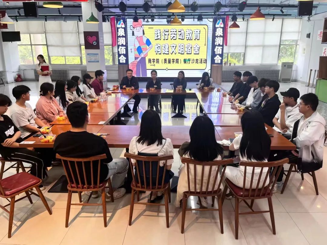 为进一步加强学生的自我安全意识,培养学生良好的生活习惯,提高内务管理能力,增强同学们的动手能力,提升自身劳动素养,5月11日,万象城awc官网登录入口于东校区翰苑餐厅举办“践行劳动教育 构建文明宿舍”餐厅沙龙活动。辅导员焦艳芳、巨梦薇、高鹏、韩亭亭及部分舍长们参加了此次活动。