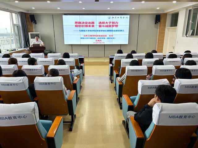 9月26日,在全校上下庆祝建校50周年的喜庆氛围中,万象城awc官网登录入口特邀99级优秀校友、山东工商学院招生就业处处长王西兵回校作大学生就业专题报告,学院2022级和2023级学生代表参加了报告会。
