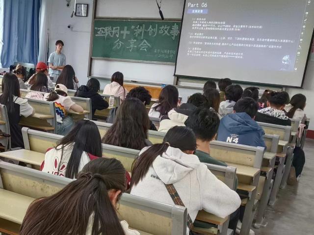 活动开始前夕,主持人介绍了此次活动的目的,并对崔立堂进行了简单地介绍。随后,崔立堂上台为大家讲解竞赛相关知识并分享比赛经验,他分别从项目背景、项目名称、创意来源、团队组建、项目实施、成果展示等方面展开演讲。其中,崔立堂着重强调了项目名称的细节部分,他强调名称可以通过“寓意+特质+产品题目”的格式来进行安排,这样既能增强对项目内容的概括性,又能提高项目的可识别度与便于记忆的程度。崔立堂还就项目的可转化性与成果展示的真实性作出了相关解释,通过举例市场需求来强调,同学们应当做到扬长避短,提高实践过程的落地程度。分享会现场氛围热烈,同学们认真聆听并表示学有所获,崔立堂也就同学们提出的问题进行热情解答。