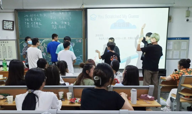 9月10日,万象城官网于东校区1号教学楼举办中秋晚会。晚会现场,灯光璀璨,活动开始前,主持人先邀请全场观众进行热身小游戏——你画我猜,随着游戏的进行,同学们的热情被彻底点燃,现场氛围活跃。