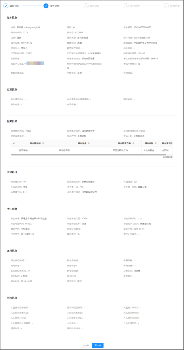 第二步:确认报考信息,查看信息后,点击【下一步】。