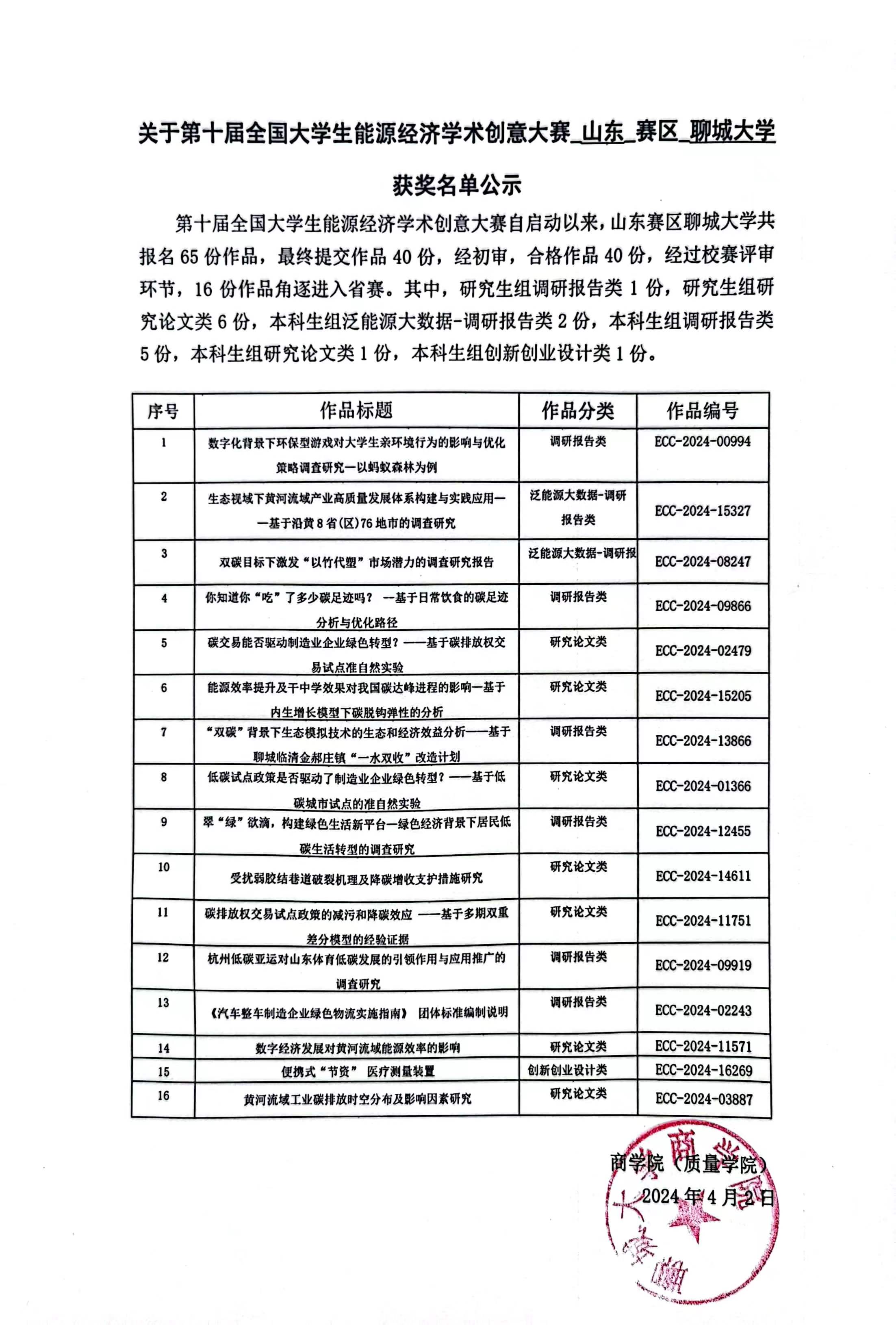 关于第十届全国大学生能源经济学术创意大赛山东赛区 万象城awc官网登录入口 获奖名单公示