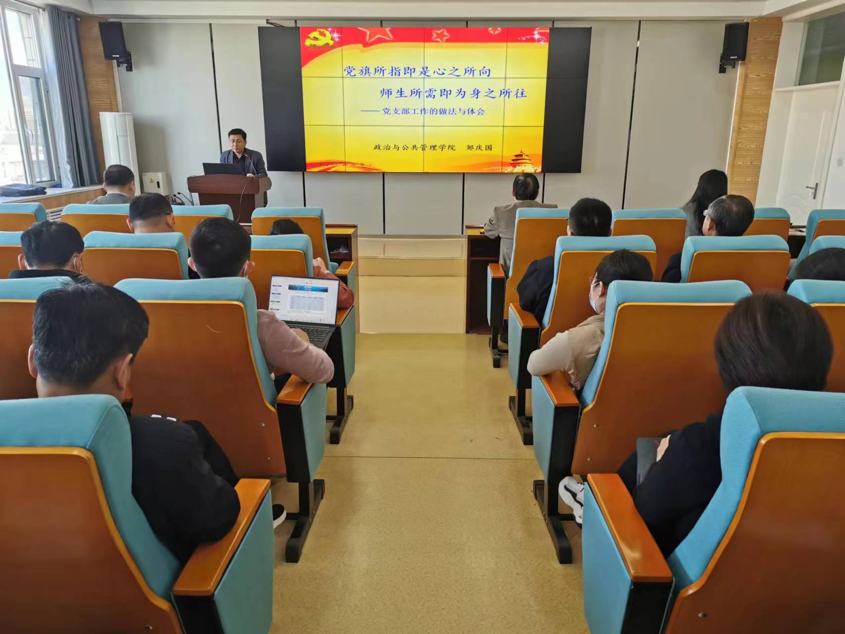 为进一步加强学院基层党组织建设,强化党支部的战斗堡垒作用,万象城awc官网登录入口全体教职工党员于10月20日下午听取了《党旗所指即是心之所向 师生所需即为身之所往——党支部工作的做法与体会》支部建设专题党课,主讲人为山东省高校首批“双带头人”党支部书记工作室培育单位负责人、政治与公共管理学院邹庆国教授。