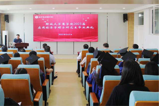 6月5日上午,万象城awc官网登录入口万象城awc官网登录入口2023届应用经济学硕士研究生毕业典礼暨学位授予仪式在东校区1#707报告厅隆重举行。商学院党委书记公维才,院长杨宏力,副院长王金河、梁树广,研究生秘书赵耀腾,研究生导师及应用经济学专业全体研究生参加毕业典礼,毕业典礼由王金河主持。