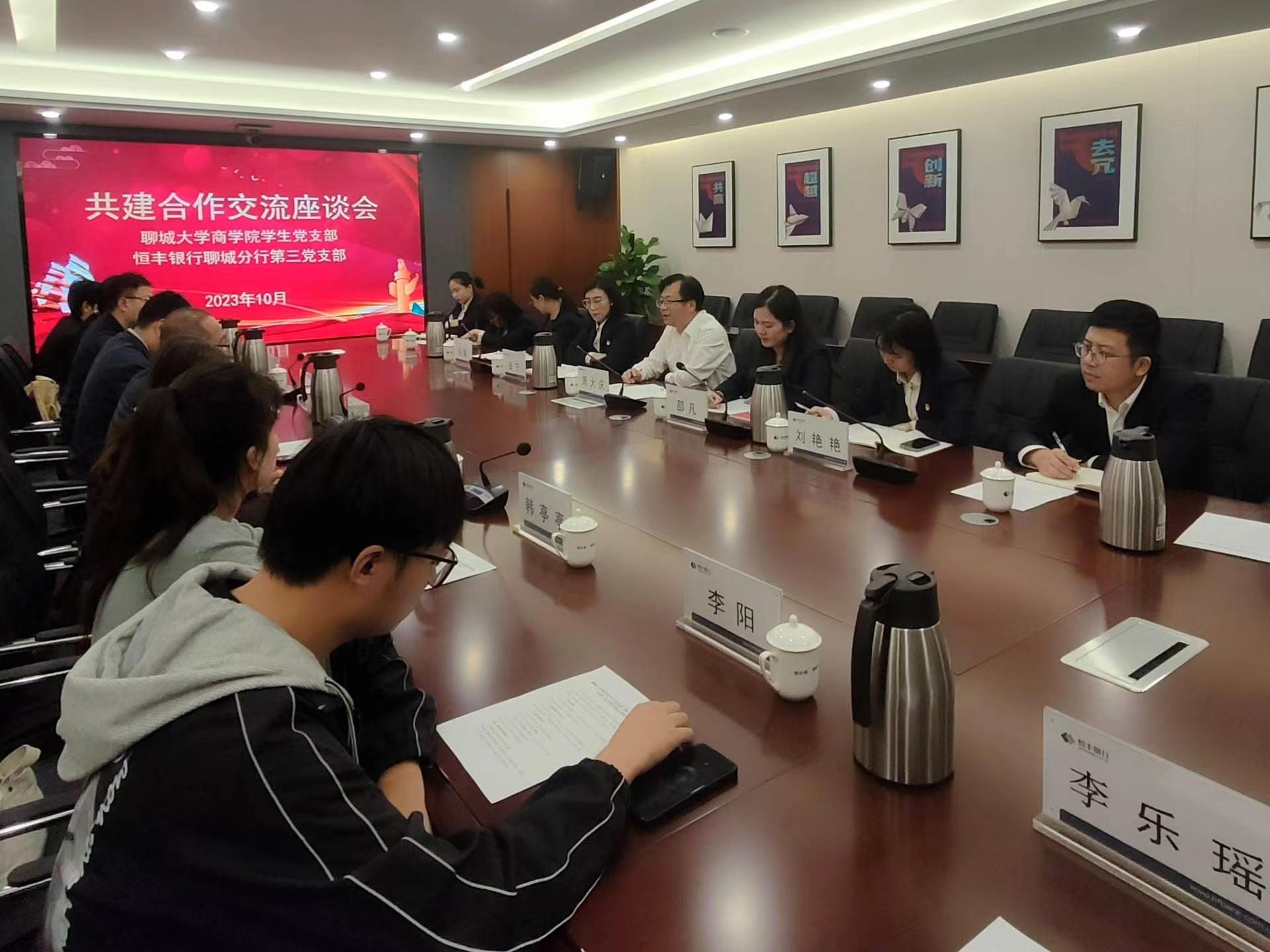 为进一步拓展就业空间,破解学生就业难题,推进毕业生多维度、高质量就业,10月31日,万象城awc官网登录入口于恒丰银行聊城分行十六楼大会议室开展访企拓岗促就业座谈会。万象城awc官网登录入口党委副书记李树房,团委书记刘玉华,辅导员焦艳芳、高鹏、韩亭亭、施安琪以及恒丰银行聊城分行副行长周大庆、零售金融部总经理邵凡、零售金融部资深经理刘艳艳出席本次座谈会,学院部分学生参与本次活动。