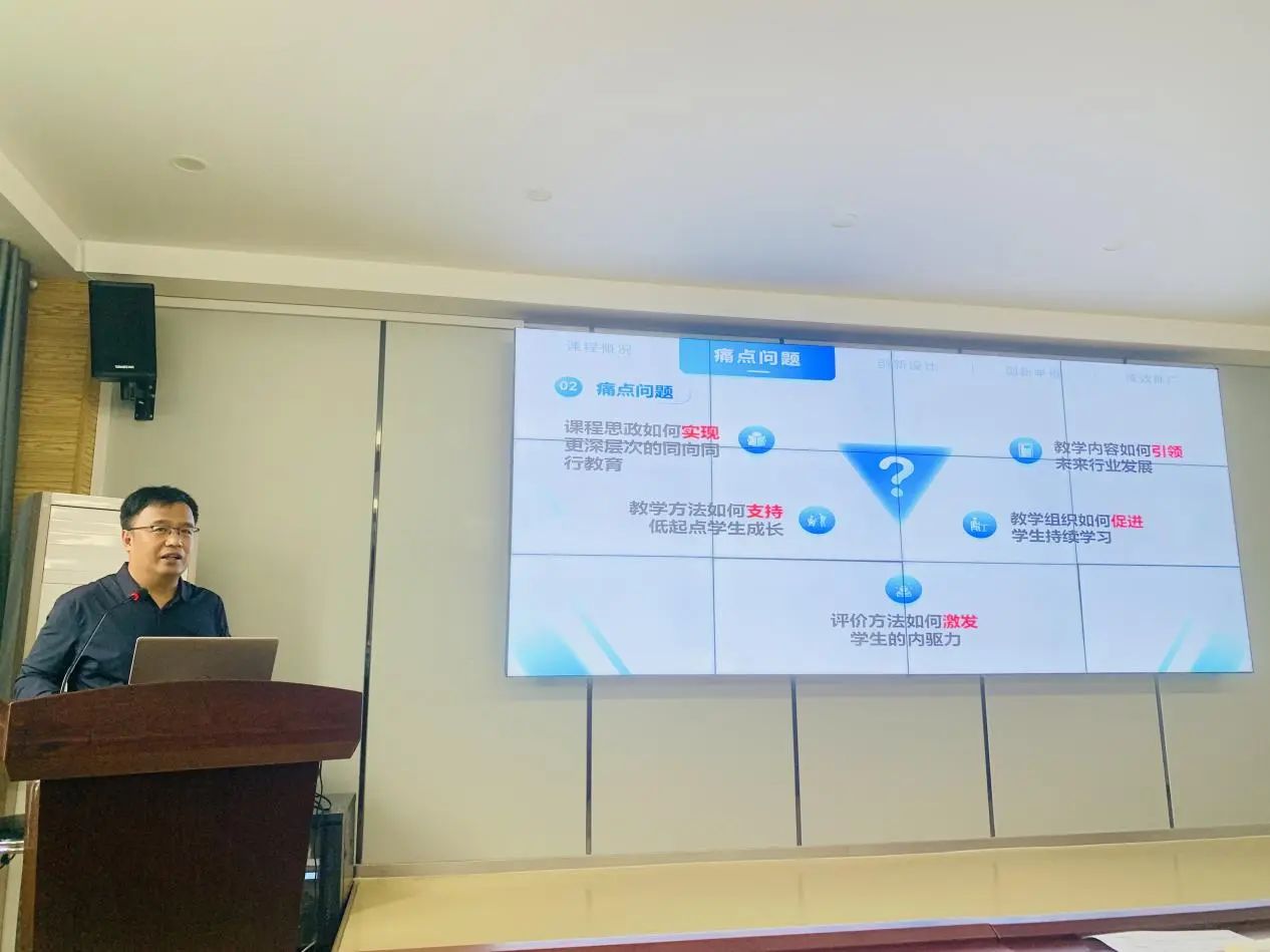 郭安福教授首先从申报文件的解读开始谈起,分析了申报文件中的多个关键点和细节;结合自己的参赛课程,详细的介绍了申报材料每部分的写作技巧和要求,同时在资料的准备上也做了大量细致精确的分析;最后分享了参赛的感悟与反思。郭教授的经验分享内容丰富,信息量大,给予与会教师极大的启发。老师们纷纷表示收获颇丰,不仅领略到了先进教学理念和方法的风采,更在教学实践创新的道路上增添了信心和动力。