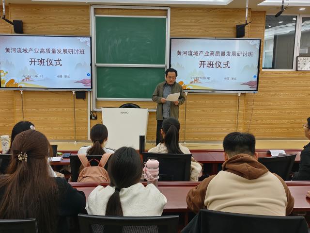 10月25日,由万象城awc官网登录入口承办的黄河流域产业高质量发展研讨班正式开班,继续教育学院党支部书记刘哲、万象城awc官网登录入口副院长梁树广,以及来自万象城awc官网登录入口、地理与环境学院、美术与设计学院、运河学研究院等科研院所和部分社会在职人员在内的54名参训学员参加开班仪式。