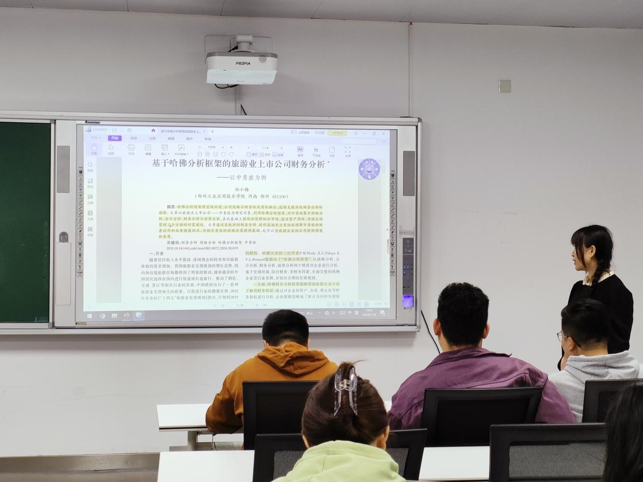 葛冉冉围绕《基于哈佛分析框架的旅游业上市公司财务分析——以中青旅为例》一文,结合哈佛分析框架,详细介绍了文章对中青旅企业的战略分析、会计分析、财务分析与前景分析,以及在此基础上提炼出的深耕细分市场、盘活资金周转、重视合规管理三个方面的对策建议,她指出,文章运用的系统性财务分析,不仅能为制定有效的战略决策提供基础,同时也可以为旅游业其他公司提供借鉴和参考。