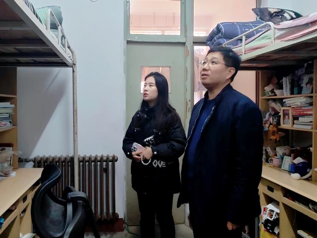 在走访过程中,刘玉华一行人采取精准走访的方式,深入各学生宿舍,与学生亲切交流,耐心询问了他们在学业和生活中遇到的困难与烦恼。对于学生因经济压力产生的焦虑,刘玉华详细阐释了学校的各类奖助学金政策、勤工俭学岗位等各项资助政策,确保每一位有需要的学生都充分了解相关福利与申请途径。同时,他为学生的学业规划出谋划策,针对专业学习、职业发展给予实用的建议,帮助他们坚定求学信念,鼓励学生要把暂时的困难当作磨炼意志的基石,积极利用学院提供的资源,努力提升自己,积极进取,以优异的成绩回报家人、学校和社会。